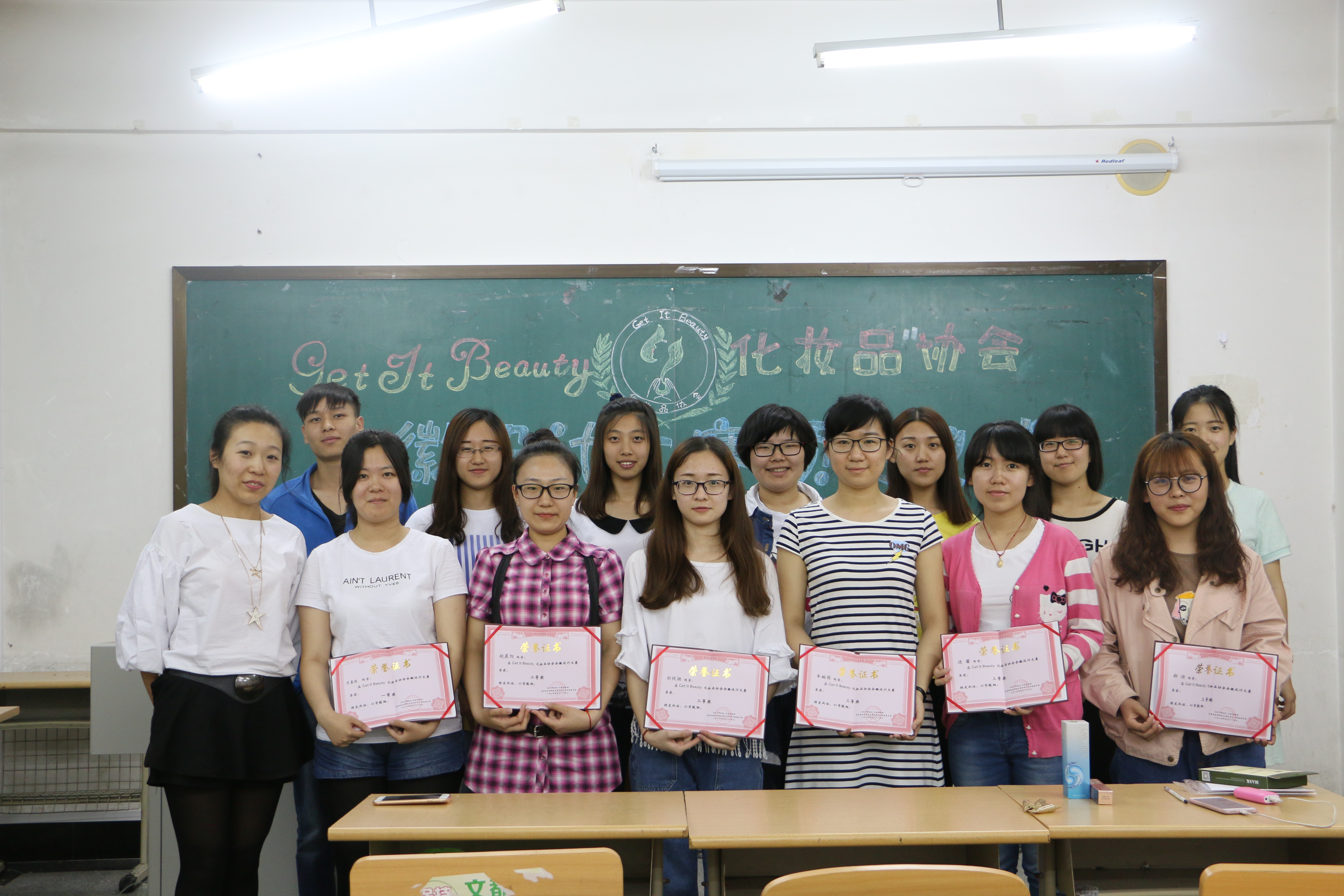 化妆品协会会长李思佳宣读获奖选手名单,获得三等奖的选手分别是连馨、郝迪、车婉萌,获得二等奖的选手是赵晨旭、刘悦驰,获得一等奖的选手为李思佳。随后,贾文婷和齐海楠分别为获奖选手颁发证书和奖品,并与获奖选手合影留念。