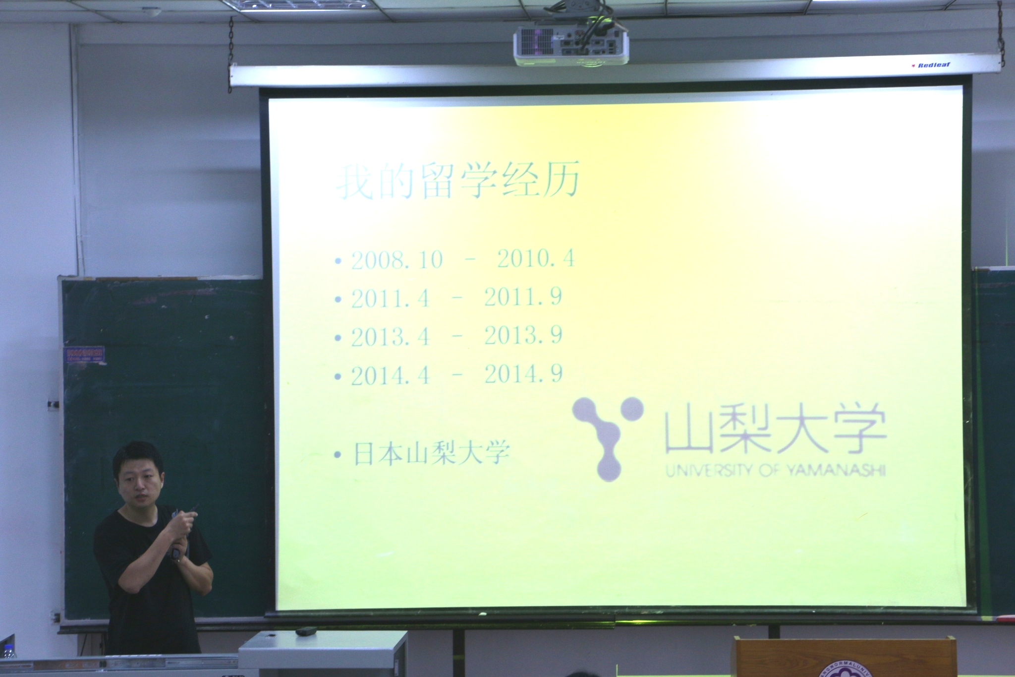 汤兑海老师向同学们讲述了自己在美国留学时的学习和生活情况
