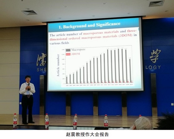 应大会组委会诚挚邀请,9月9日下午赵震教授做了题目为“Design, Preparation of Novel Macroporous Materials and Their Applications in Catalysis”的大会特邀报告。在报告中,赵震教授深入浅出介绍了研究团队前期在三维有序大孔催化材料的设计、制备及柴油车尾气治理和光催化转化CO2等方面所取得的突破性研究成果。