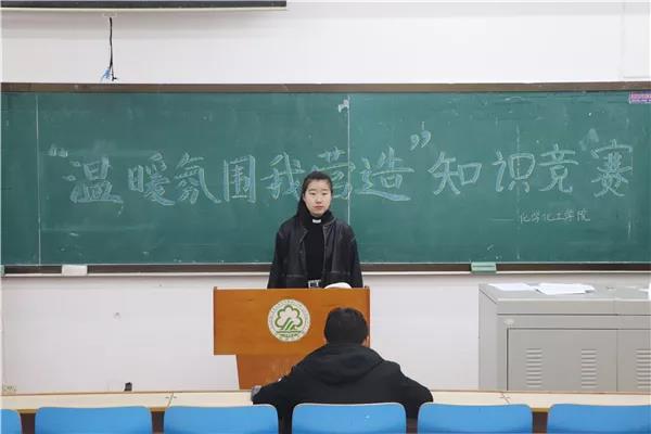 为了进一步提高同学们对生活区管理知识内容的认识,以竞赛促进学习,以学习强化认识,促进帮助同学们养成良好行为习惯,打造温暖和谐的生活氛围,304永利集团于2019年11月3日10时30分在博文楼201教室开展了“温暖氛围我营造”知识竞赛活动。304永利集团团委员工会主席兼办公室主任唐艺卓及全体参赛同学参与了本次活动。