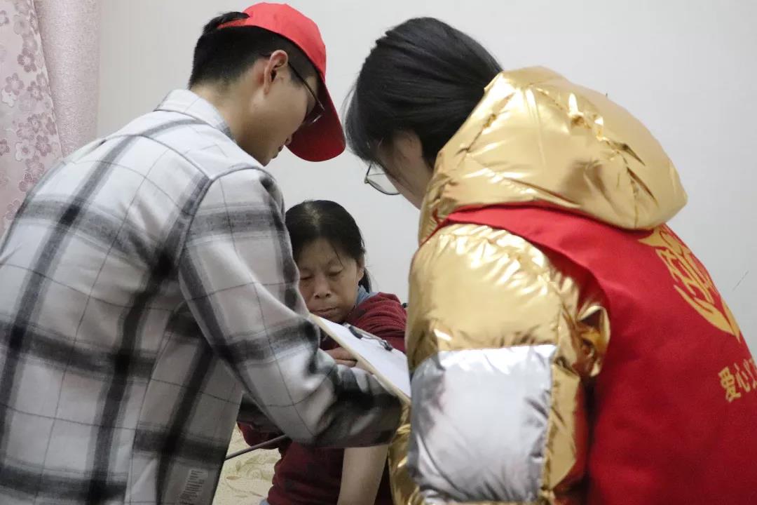 志愿者们为老人量血压中