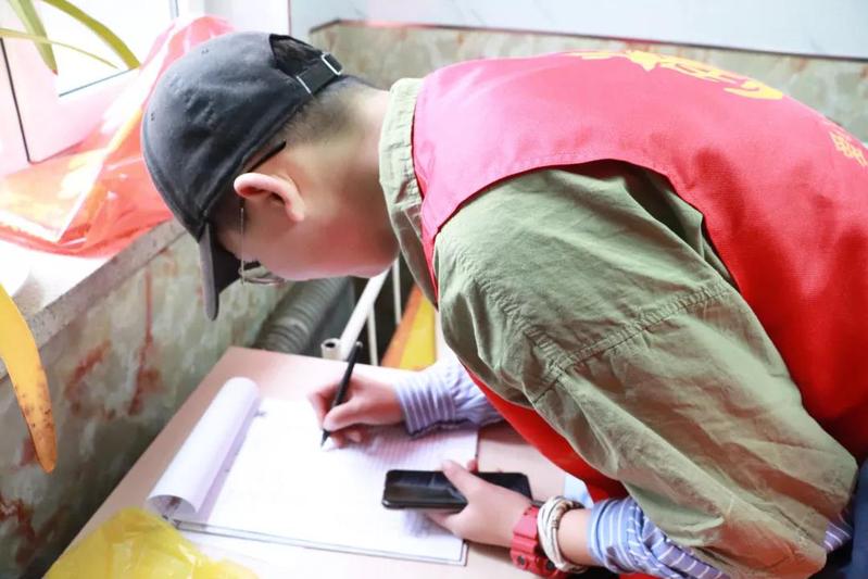 志愿者们排队签到中
