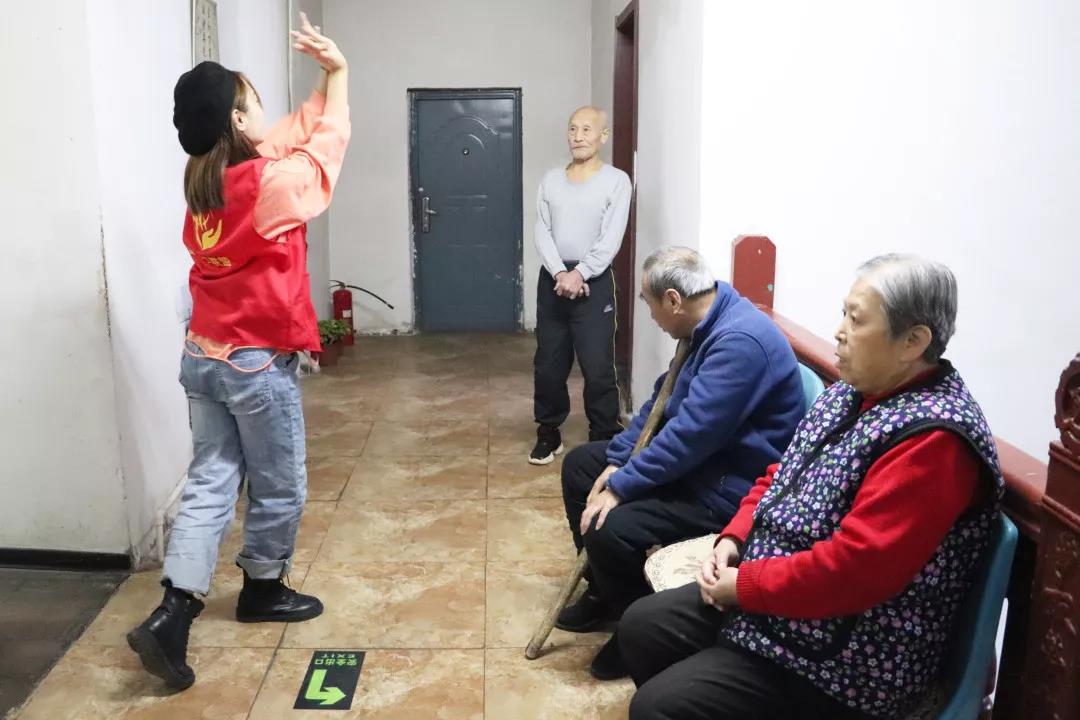 志愿者为老人表演才艺中