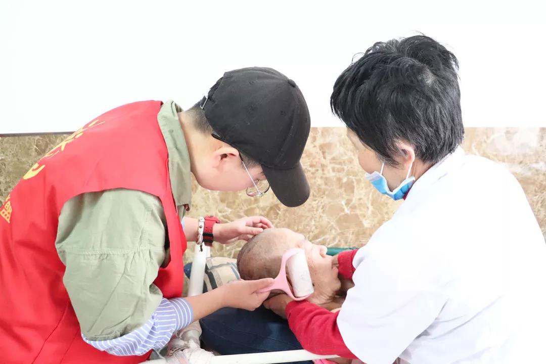 随后,志愿者用自带的理发器、指甲刀为老人整理个人卫生,帮助老人清扫地面、擦地、擦桌子、整理床褥等,并与老人们进行贴心交流,聆听他们的故事。