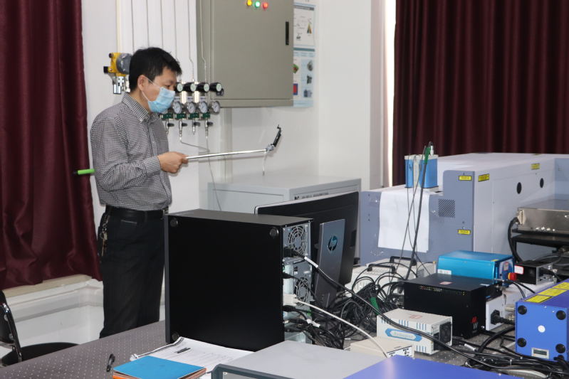 党总支副书记赵广红、辅导员张慧洁老师及员工代表在实验中心合影留念
