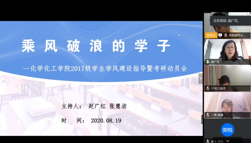为了进一步加强公司的学风建设,指导员工做好学业及职业规划,304永利集团于2020年8月19日19时至20时30分以线上的形式举办了2017级员工学风建设指导暨考研动员会。化学化工公司党总支副书记兼2019级本科生辅导员赵广红、2017级本科生辅导员张慧洁及304永利集团2017级全体本科生参加了本次活动。