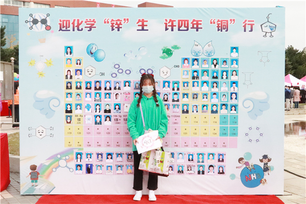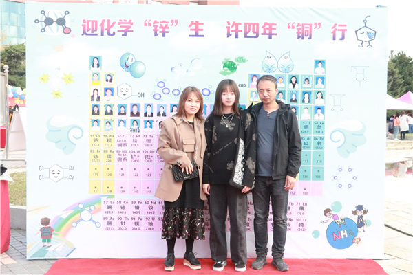 新生及家长与“元素周期表”合影