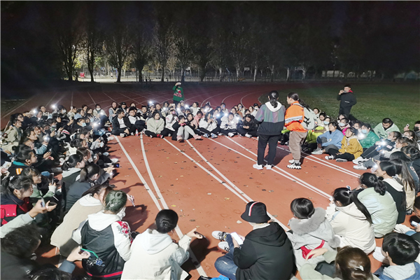 休息的间隙,你们会拉着助导助教们合照。一张张阳光灿烂的笑脸深深地刻画在每一位学哥学姐的心里。军训少不了军歌,晚训的夜晚光斑与树影交错,当嘹亮的歌声迎风而起,秋夜微凉,你们初露锋芒。风声伴着歌声,歌声随着笑声,是结交新朋友的喜悦也是家国情怀的流露。一曲《团结就是力量》你们跳出了青春的风采,舞出了青春的活力。