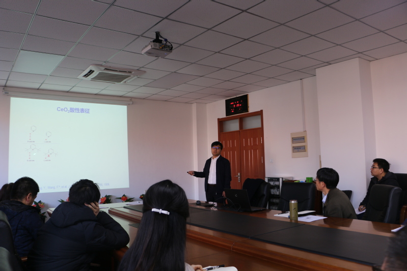 王峰教授本次报告的题目为《二氧化铈催化有机小分子偶联反应》,详细地介绍了二氧化铈的主要研究方向、晶体结构、氧缺陷的产生、酸性表征、二氧化铈催化转酰胺化反应、催化胺的糖基化反应以及如何继续更好的提升二氧化铈的催化性能。报告内容丰富精彩、形象生动,大大拓宽了参会师生们的专业学术视野。报告结束后王峰教授对公司教师和同学们提出的问题进行了一一耐心解答,并与师生就相关问题进行了积极交流。