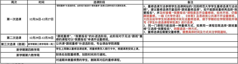 一、本次选课时间为12月12日(星期一)—新学期第三教学周周二,具体时间安排如下表所示。