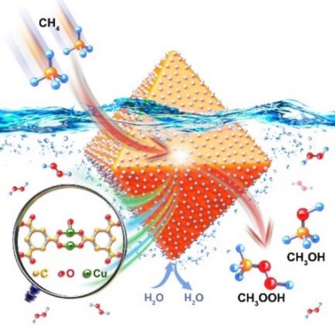 甲烷的C-H键活化是天然气、页岩气和煤层气直接转化为液体燃料的关键。因此,建立低温甲烷选择性氧化催化路线是催化科学和技术面临的重大挑战之一。金属有机框架(MOFs)材料不仅能构筑结构均一的高分散金属离子催化剂,而且是一类优良的仿生酶催化剂材料,采用疏水改性MOFs材料作为液相反应中的甲烷选择氧化催化剂,不仅克服了MOFs材料普遍不耐水的缺点,同时可以生成配位不饱和双核铜活性位点。