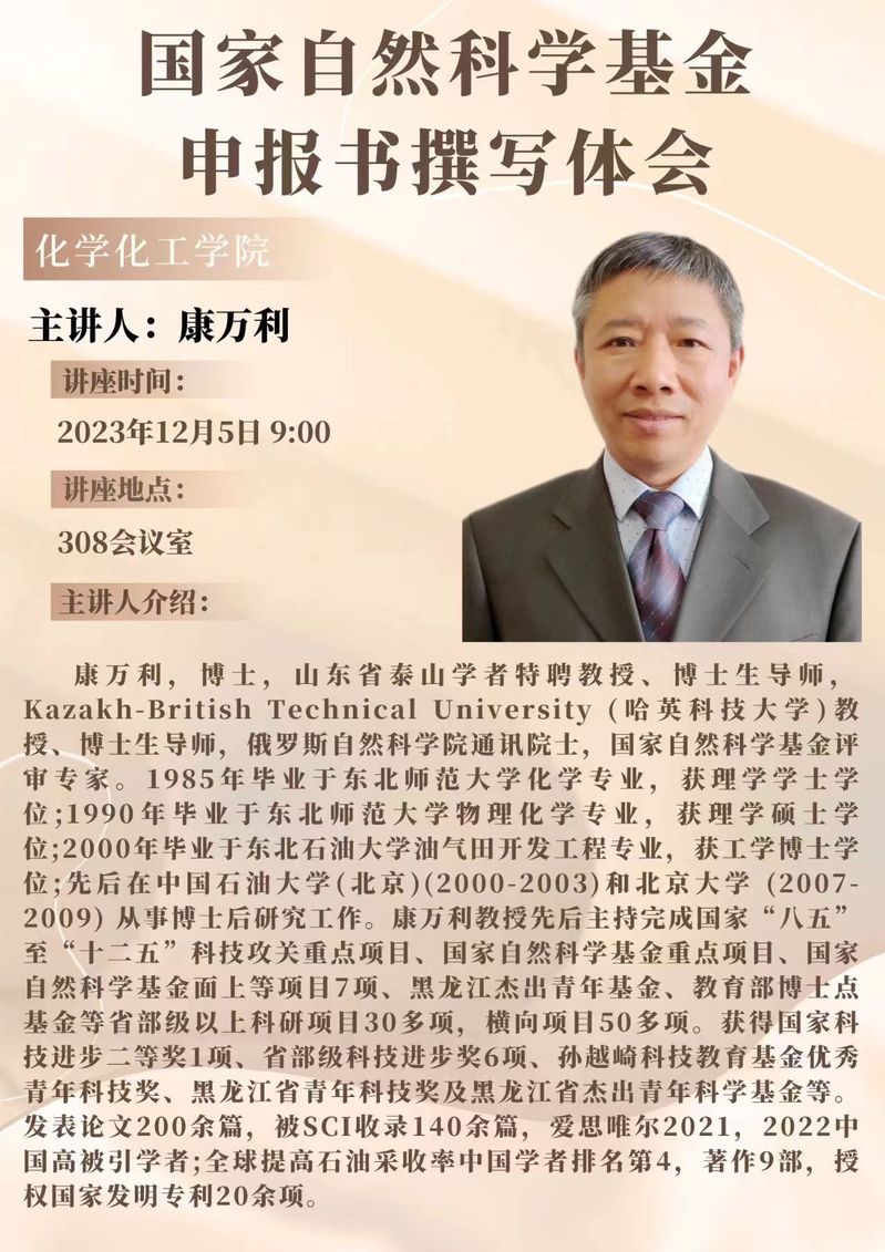 康万利教授学术报告预告:国家自然科学基金申报书撰写体会