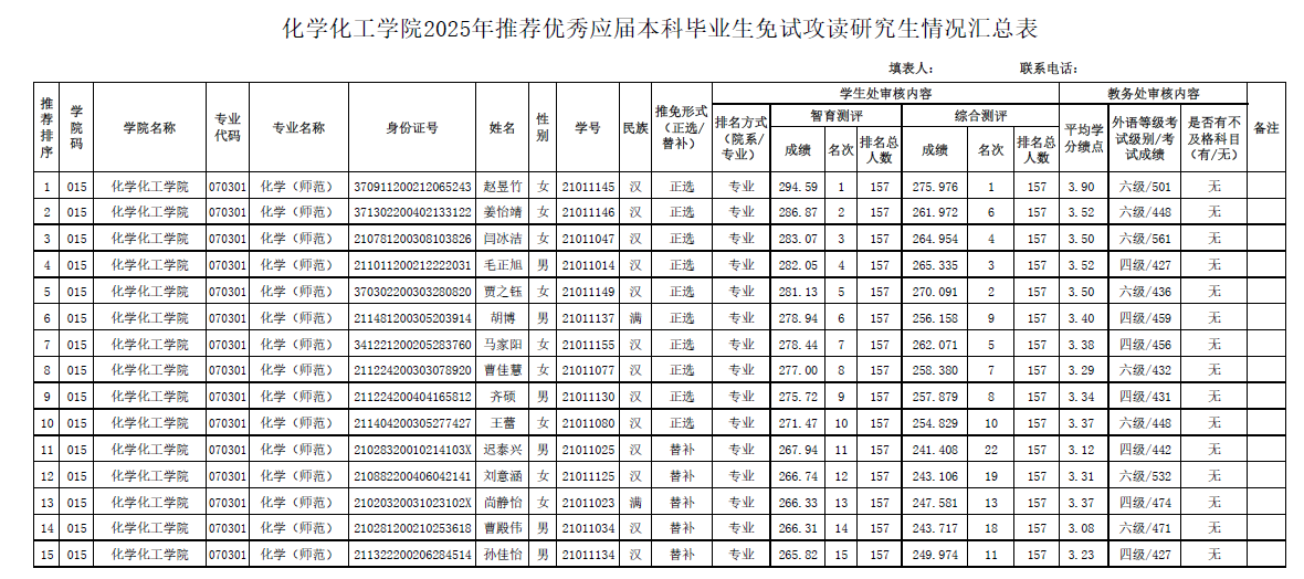 附件三:304永利集团2025年推荐优秀应届本科毕业生免试攻读研究生情况汇总表.png