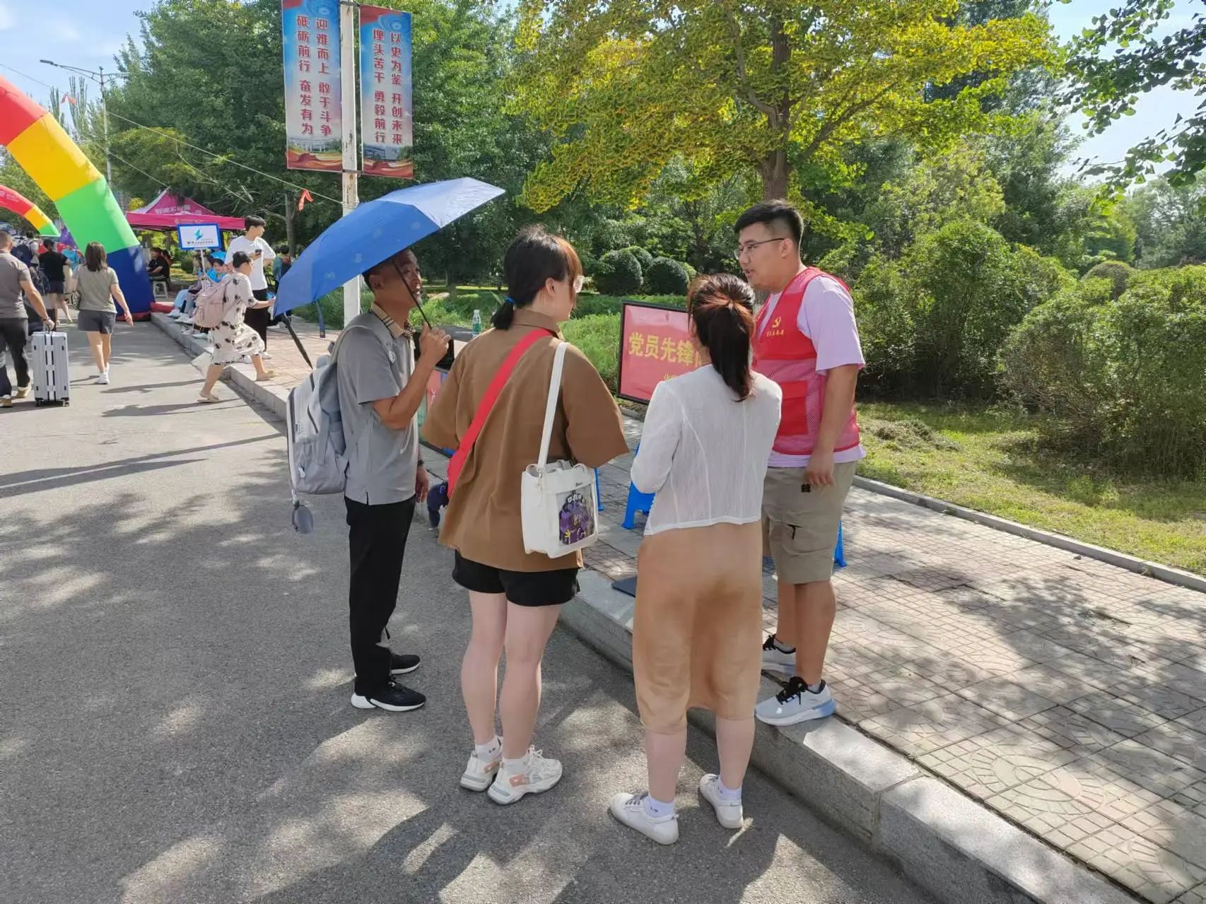 公司设立了党员先锋岗,志愿者们发挥着先锋模范作用,用最鲜艳的一抹红色诠释青春最美的模样。他们顶着骄阳,精神饱满、热情投入,有的为远道而来的新生提供及时指引,有的帮助新生运送大件行李,有的带领新生游览校园帮助他们更快熟悉校园环境,他们挥洒汗水、辛勤劳动,是迎新现场一道靓丽的风景。