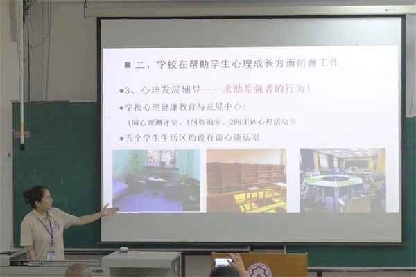 新生辅导员张慧洁老师向家长介绍了心理健康对于学业成功和生活质量的重要性。同时特别强调公司为新生提供了全面的心理健康支持,以助力他们在学习和生活中都能取得最佳表现。公司会定期举办心理健康讲座和工作坊,涵盖应对压力、时间管理、人际关系建立等主题,帮助新生快速更好地适应老员工活,培养积极的生活态度和应对挑战的能力。